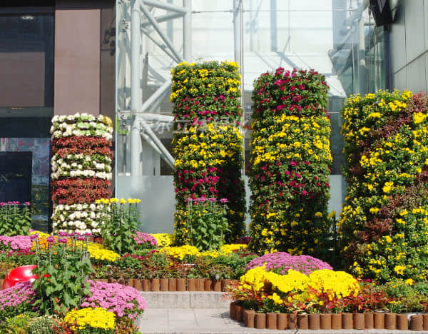 由SL-YH7526組合花盆構(gòu)成的花柱,每一層為4個(gè)花盆,整個(gè)花柱直徑為1000mm。 由SL-YT5030組合花盆構(gòu)成的花柱,每一層為9個(gè)花盆,整個(gè)花柱直徑為1500mm。