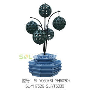 景觀花樹,由5個(gè)直徑600mm的園藝球SL-Y060,配以鋼結(jié)構(gòu)組成。高度2500mm。 整體造型由鋼骨架、單孔花架、卡盆、卡扣、灌溉系統(tǒng)、無紡布袋配以各種花草而成。