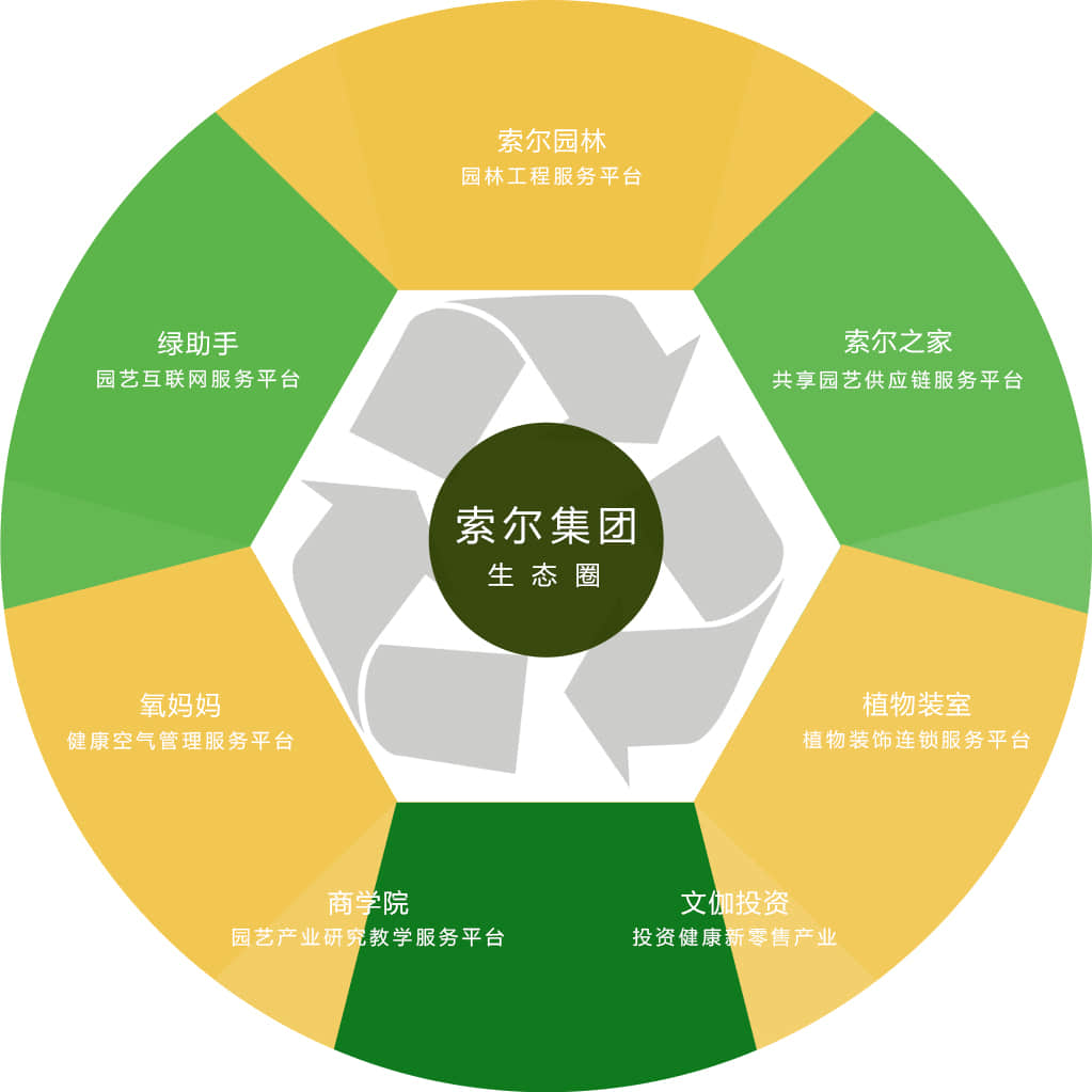 索爾20年的立體綠化行業經驗,打破傳統商業模式,利用互聯網、物聯網、大數據等技術實現了資源供應鏈整合,